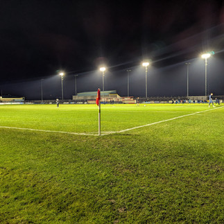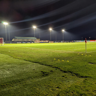 There’s a classic roofed stand behind the goal to my right whilst most of the far side which has the dugouts is open to the elements, you can see the rugby stand in the background as four floodlights beam down on the fluffy and squidgy looking surface below.