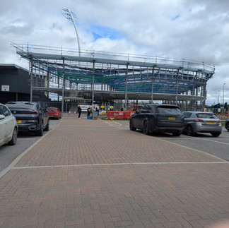 It's a five minute walk from where I've parked to the ground as I cross the busy A16 whilst contemplating a Starbucks, I don't bother as I can't find the entrance, so instead head for the ticket office, a construction site immediately in front, the main stand glass backed is lovely looking to my left as a ground hopper with a back pack on takes a picture of it.