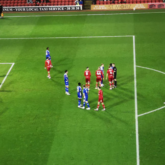 As the two teams come out there’s little in attendance, a few scattered in each stand, the few Rovers fans high up behind the goal to my right, a couple of thousand in the stand I’m in, I’m intrigued to see how the game will go, who wants it more? For two League One teams playing each other is it seen as a burden or does either team really want to go out and win it?