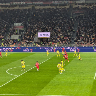 A thing of beauty, the San Siro set back stood alone is nicknamed 'la Scala del calcio (named after a theatre in Milan but this one is for football), as we walked through stalls of endless food and drink catering options it provided the backdrop to a perfect setting, walking through calm crowds slowly growing, a couple of hours ahead of kick off in perfect Italian winter sunshine, I decided to pay a little more for my tickets, to include a museum bar corporate buffet and after, a wind down in the on site sports bar named '1899'.
