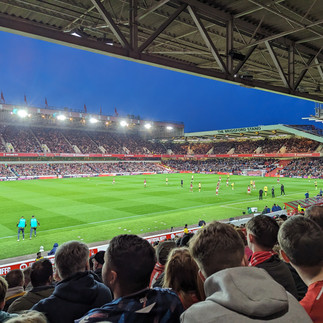 PJ’s whatsapped my ticket barcode to me and I’m in on first attempt, the right corner entrance to the Peter Taylor Stand, the oldest of the four stands at the City Ground built in the 1960’s it’s tired looking and soon to be replaced, but always a good atmosphere in the infamous ‘A’ block although we’re opposite ends tonight, with the footballers wives and children in what a huge red sign states is the ‘family enclosure’.
